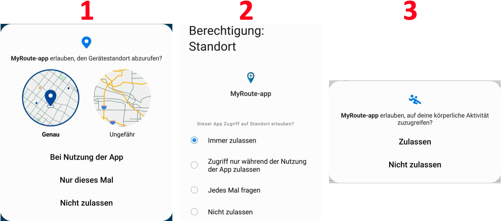- Die letzte Meldung bittet um die Berechtigung zum Zugriff auf Ihre „körperliche Aktivität“. Diese Berechtigung ist für die korrekte Funktion der Aufzeichnung nicht zwingend erforderlich, wird aber empfohlen.
