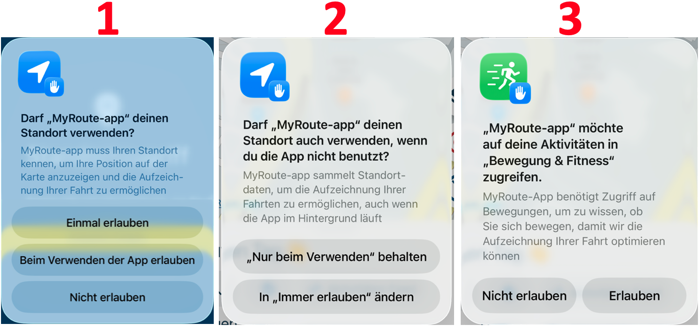 - Standortzugriff: Erteilen Sie hier die Berechtigung für Ihren Standort. Wir empfehlen die Option „Bei Nutzung der App“. Weitere Informationen zu Standortberechtigungen finden Sie später in dieser Anleitung.