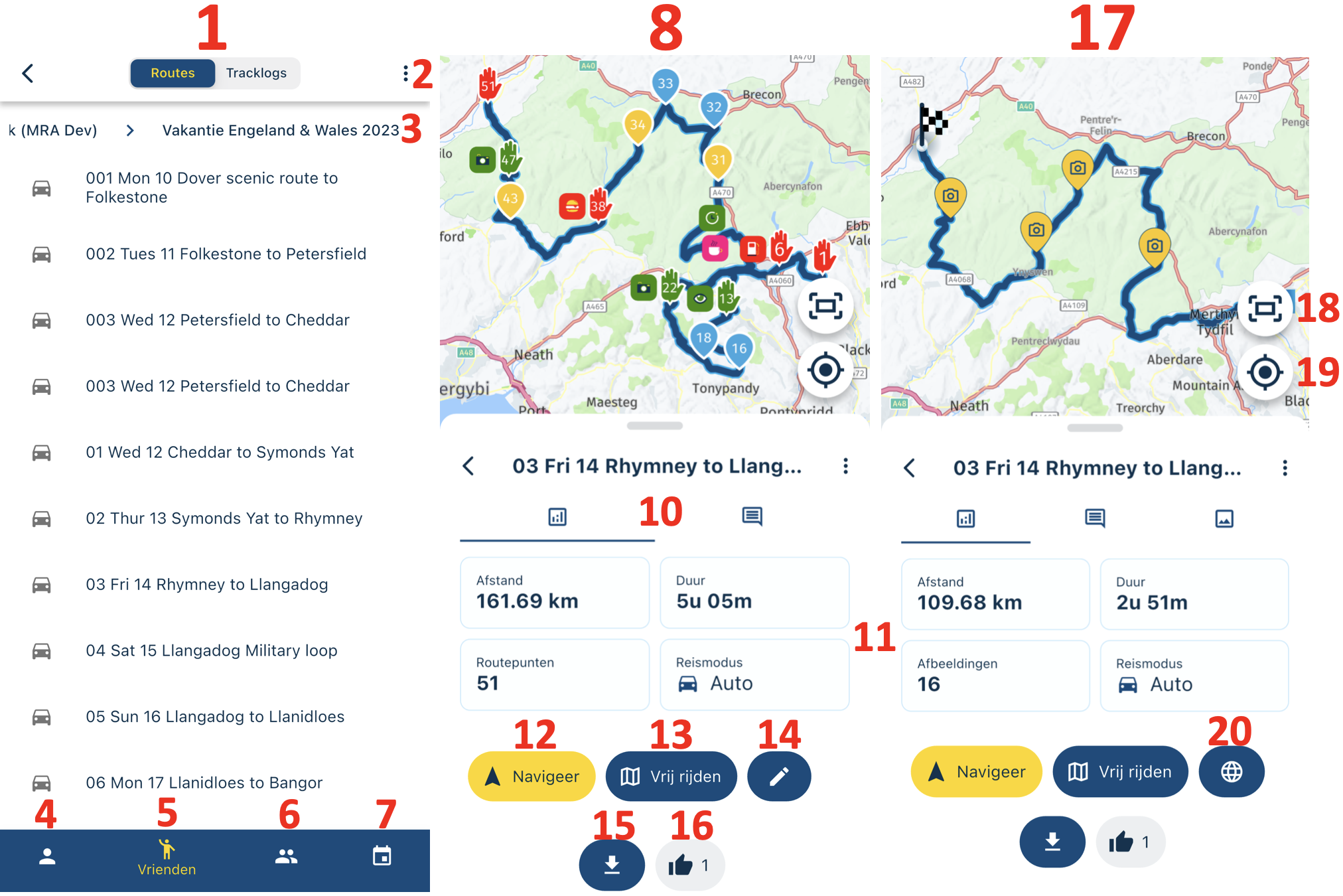 - Vrienden: Hier is jouw vriendenlijst te vinden. Klik op de vriend om zijn/haar routes en tracklogs te zien die op openbaar en vrienden staan;
